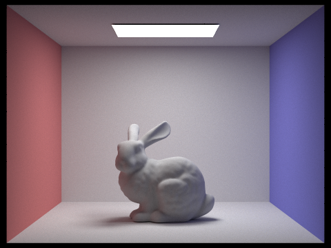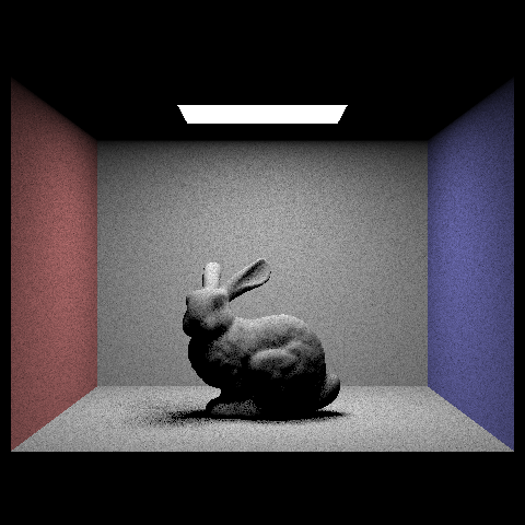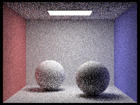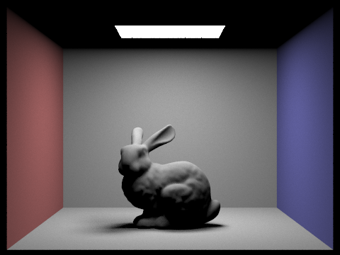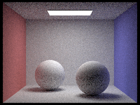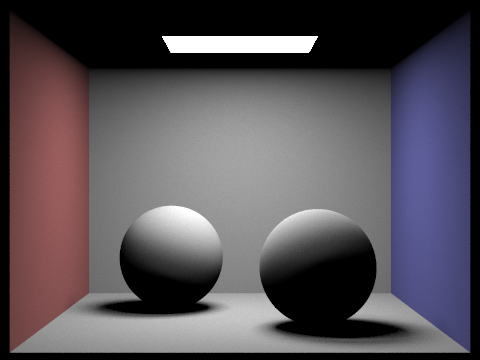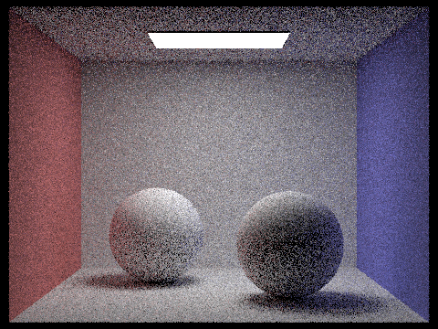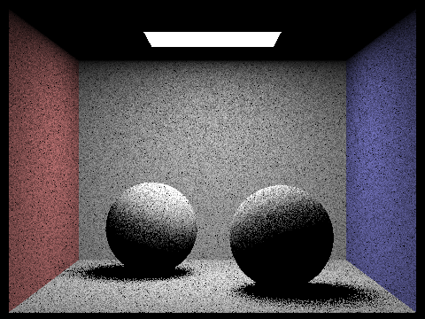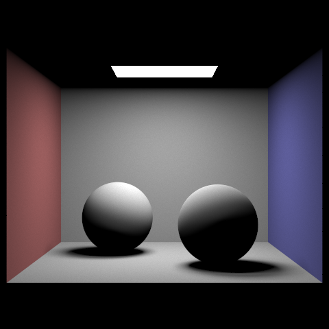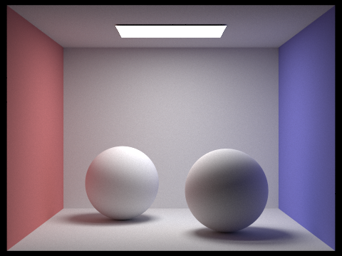 max_ray_depth = 2; The light ray can bounce twice upon ray-scene intersection. Note that the render is brighter due to the indirect illumination. |