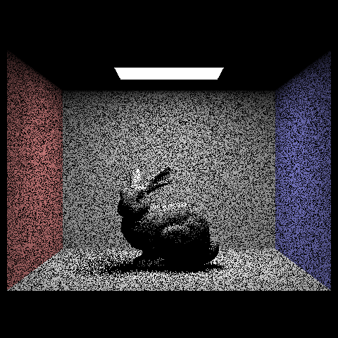 max_ray_depth = 100; The light ray can bounce up to 100 times upon ray-scene intersection. There is no noticeable difference between max_ray_depth = 3 and max_ray_depth = 100. With each light ray bounce, the ray is more likely to terminate and so it's unlikely a ray reached 100 bounces. Comparing rendered views with various sample-per-pixel-rates and 4 light rays